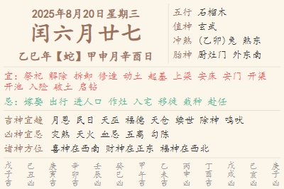 2025年8月20日黄历 时辰吉凶格局