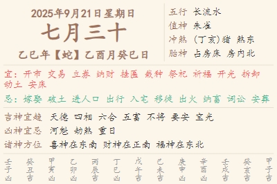 2025年9月21日黄历 时辰吉凶格局
